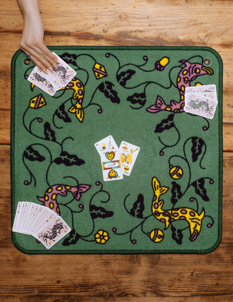 Beschaffenheit: Ringsum grüne Bordüre, mit zwei Ösen